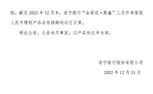 遂宁银行2022年度“金荷花·聚鑫”三月开净值型人民币理财产品资产运作公告