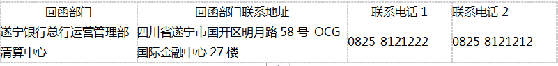 4.各会计师事务所或其他第三方机构发出询证函时,询证函抬头处的接受机构应填写为:遂宁银行股份有限公司。